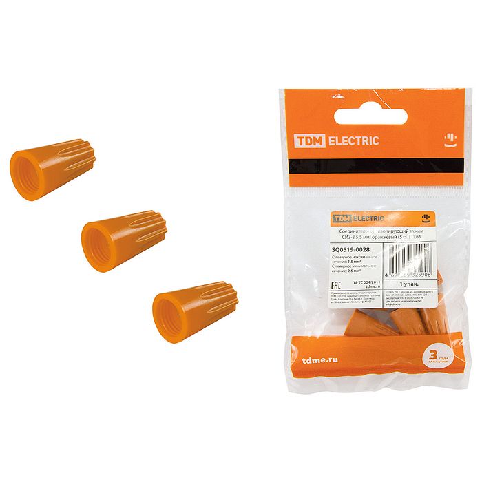Соединительный изолирующий зажим СИЗ-3 5,5 мм2 оранжевый (5 шт) TDM